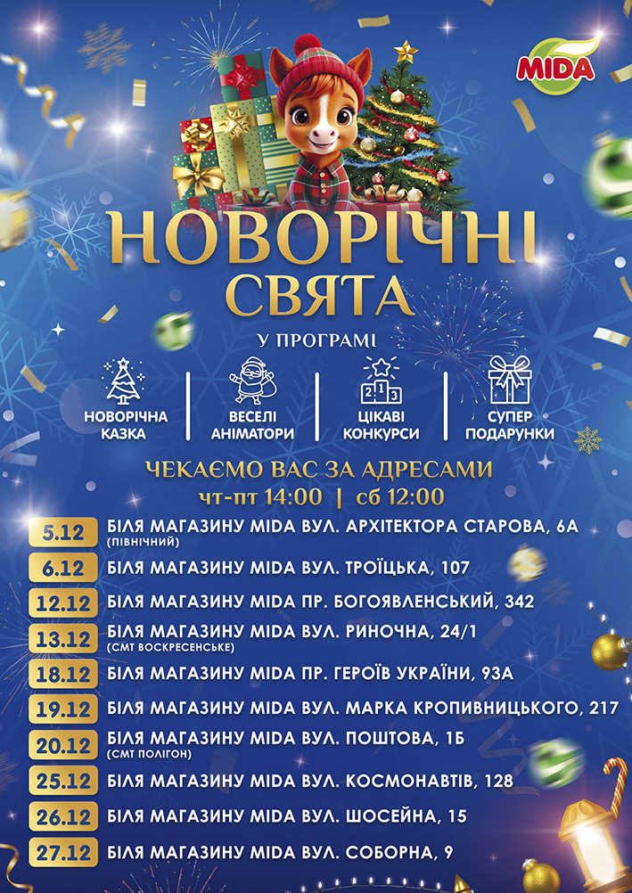 MIDA - торговельна мережа магазинів у Миколаєві та Херсоні, що спеціалізуються на різноманітних товарах харчування, предметах побутової хімії та товарах першої необхідності. Додатково, наші магазини оснащені внутрішніми виробництвами такими як пекарня, кулінарія та м'ясні цехи. Наша команда завжди дбає про наявність всіх необхідних товарів на поличках магазинів MIDA.