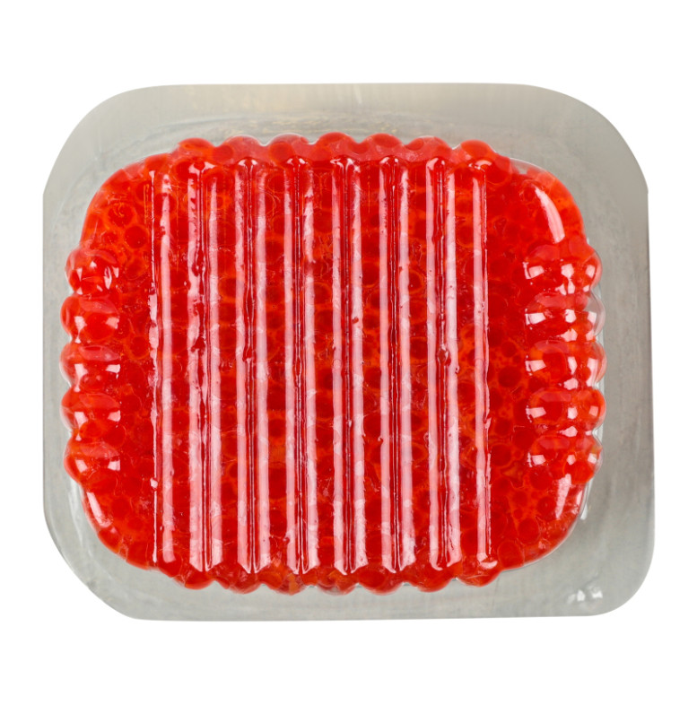 | Склад (укр.) | Лососеві риби солоні (фарш) (вирощено в умовах аквакультури) - 6%, олія рослинна - 7.6%, агар-агар - 2%, сіль кухонна, натуральний ароматизатор ікри, підсилювач смаку глутамат натрію, регулятор кислотності лимонна кислота, антиоксидант ізоаскорбат натрію, пектин, консервант сорбат калію, харчові барвники: Сонячний захід, Понсо, вода питна |