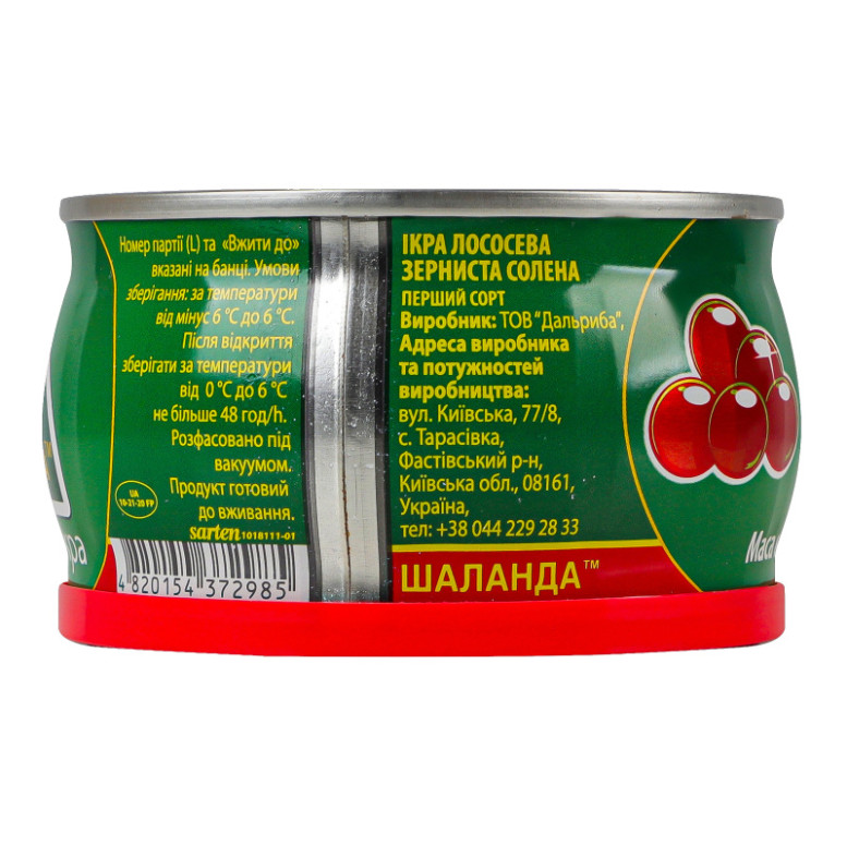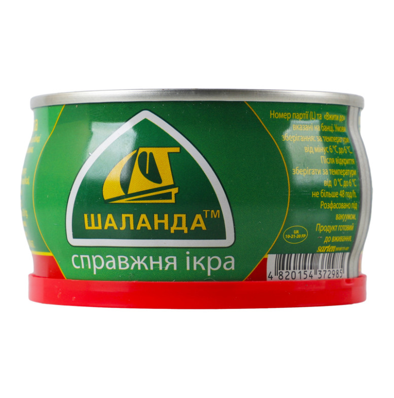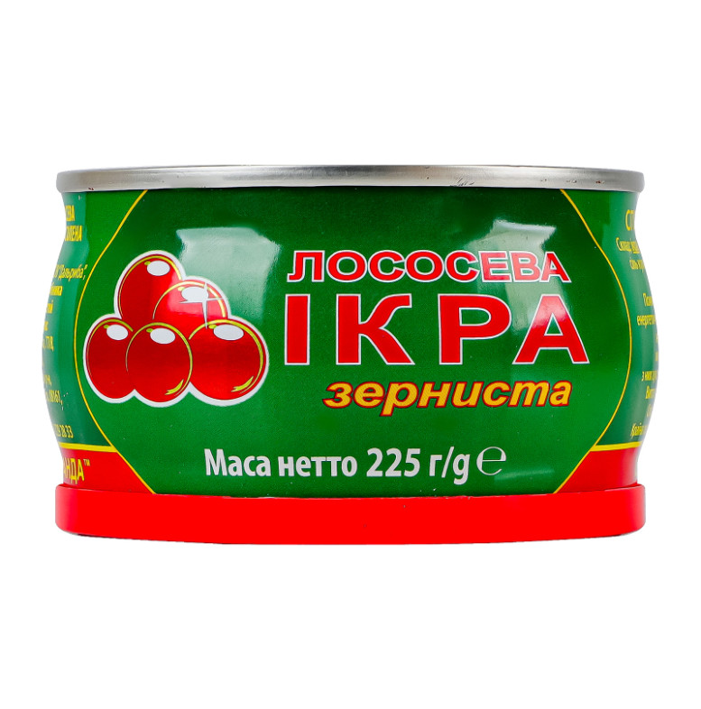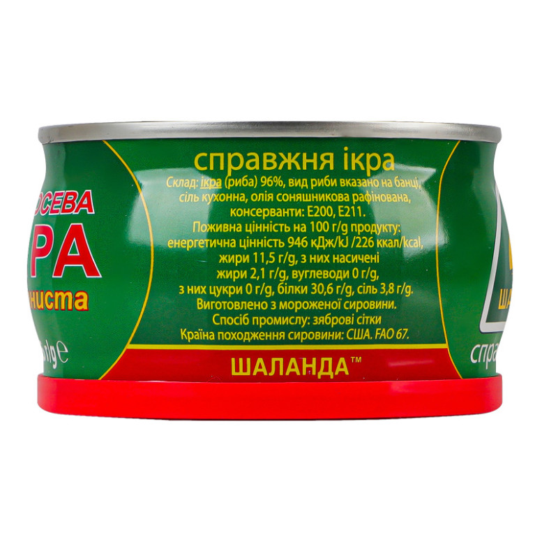 | Склад (укр.) | Ікра (риба) 96%, сіль кухонна, олія соняшникова рафінована, консерванти: Е200, Е211 |