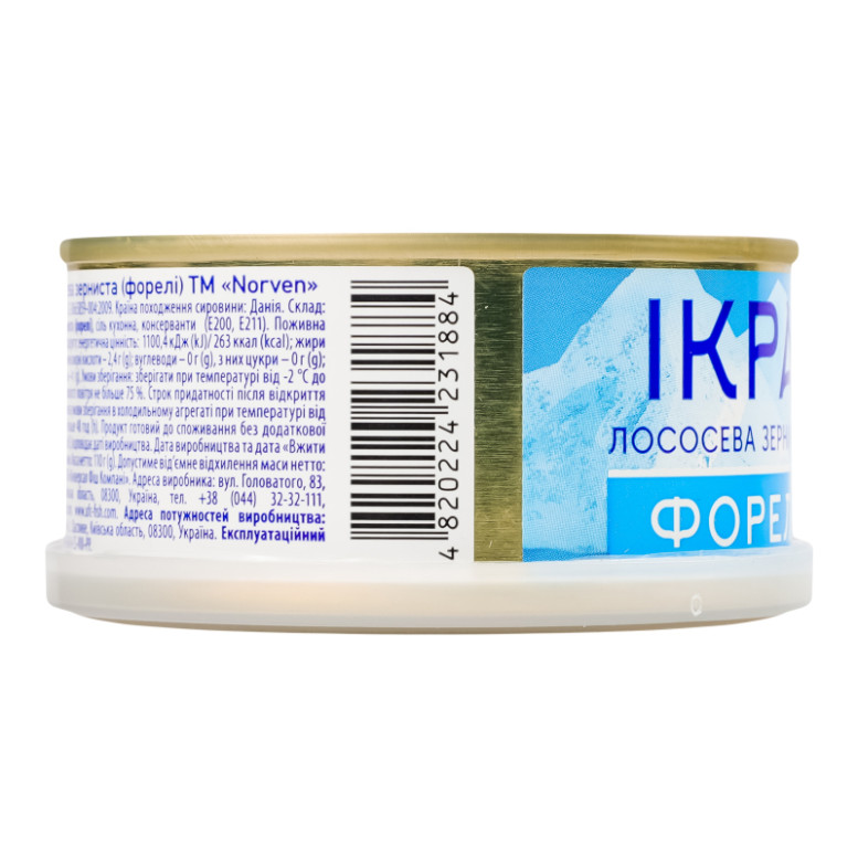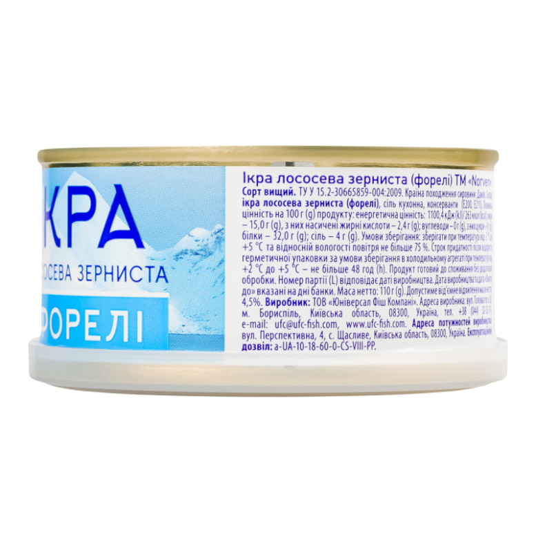 Склад: Ікра лососева зерниста (форелі), сіль кухонна, консерванти (Е200, Е211)