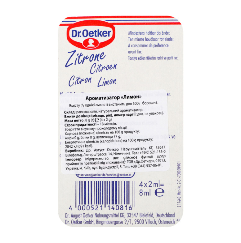 Ароматизатор Лимон Dr.Oetker к/у 4х2г