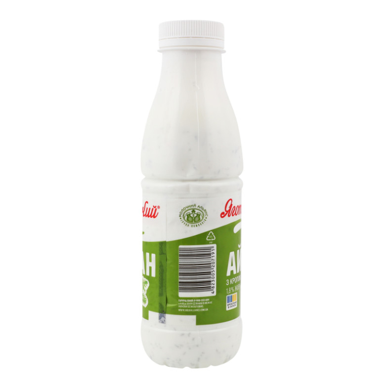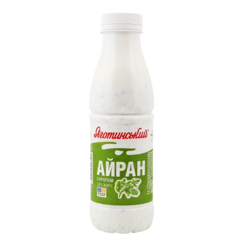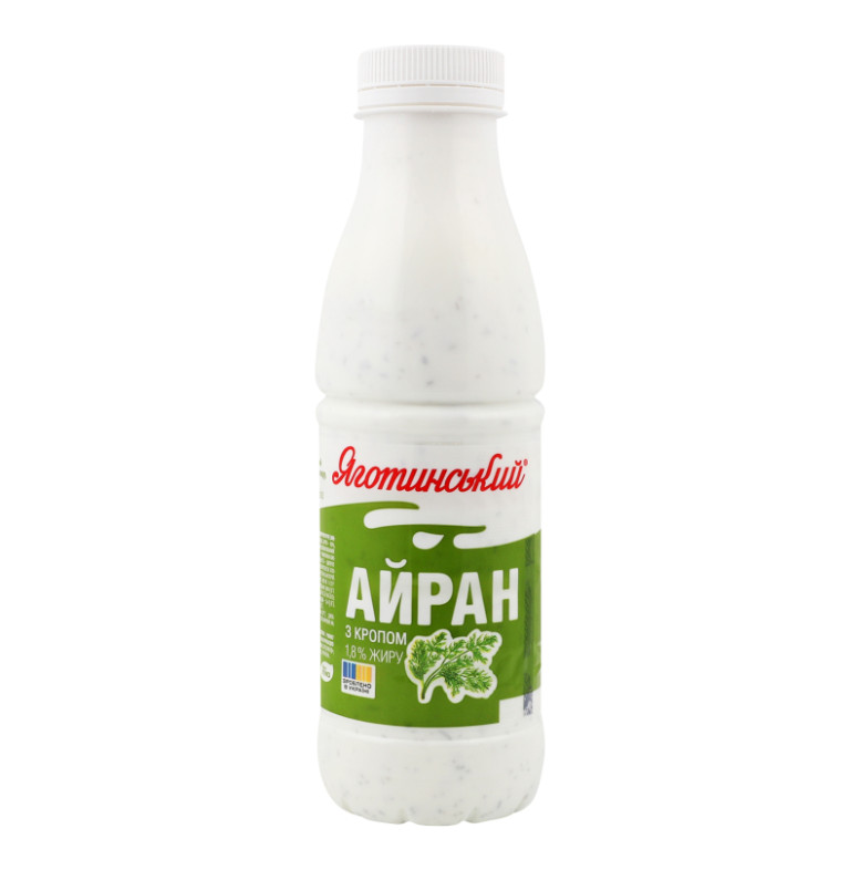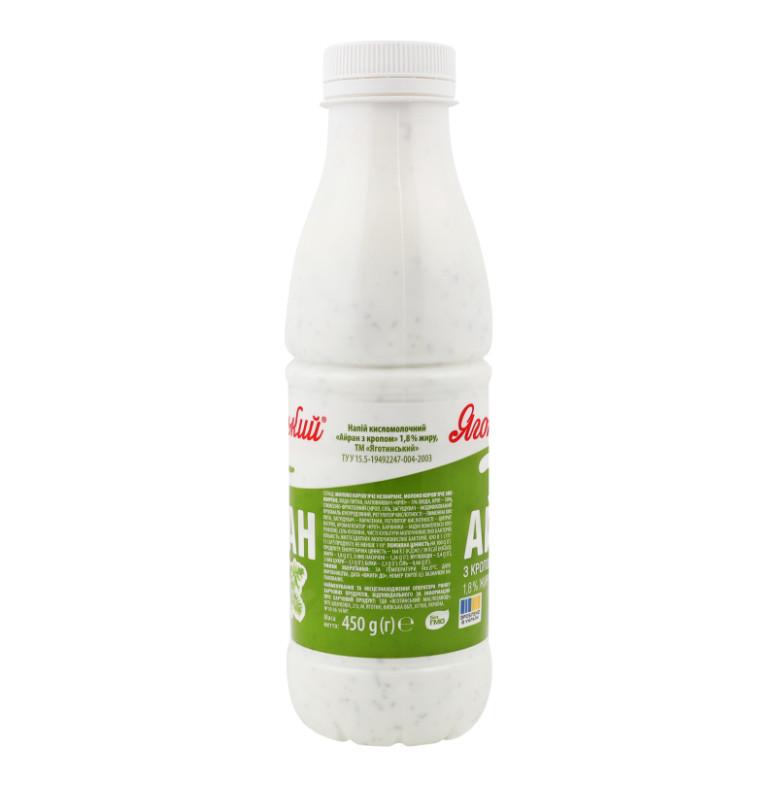 Склад: Молоко коров'яче незбиране, молоко коров'яче знежирене, вода питна, наповнювач "Кріп" - 7% (вода, кріп - 10%, глюкозно-фруктозний сироп, сіль, загущувач - модифікований крохмаль кукурудзяний, регулятор кислотності - лимонна кислота, загущувач - каррагінан, регулятор кислотності - цитрат натрію, ароматизатор "Кріп", барвники - мідні комплекси хлорофілів), сіль кухонна, чисті культури молочнокислих бактерій
