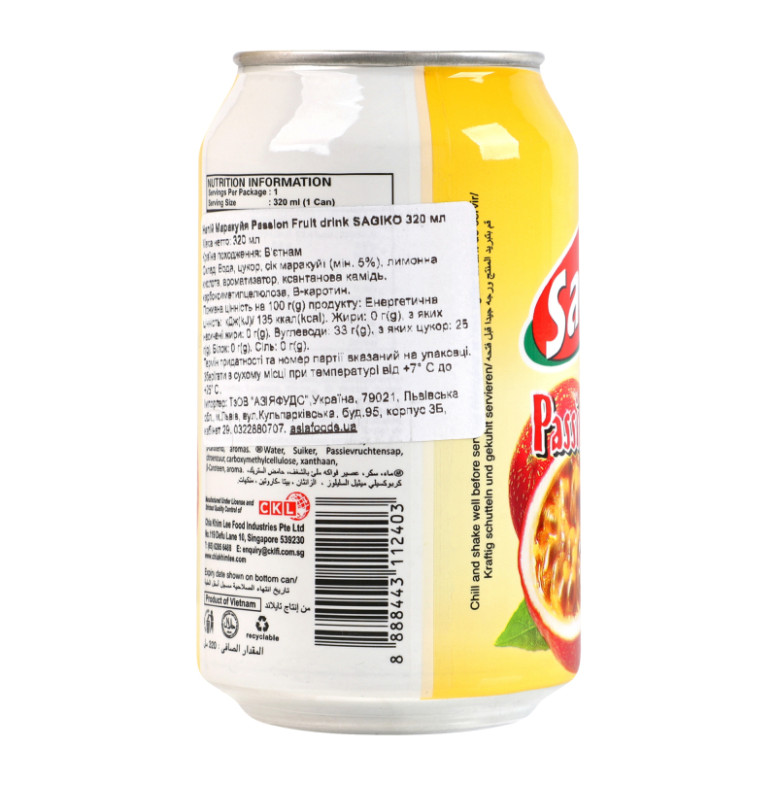 Напій Маракуйя Sagiko ж/б 320мл