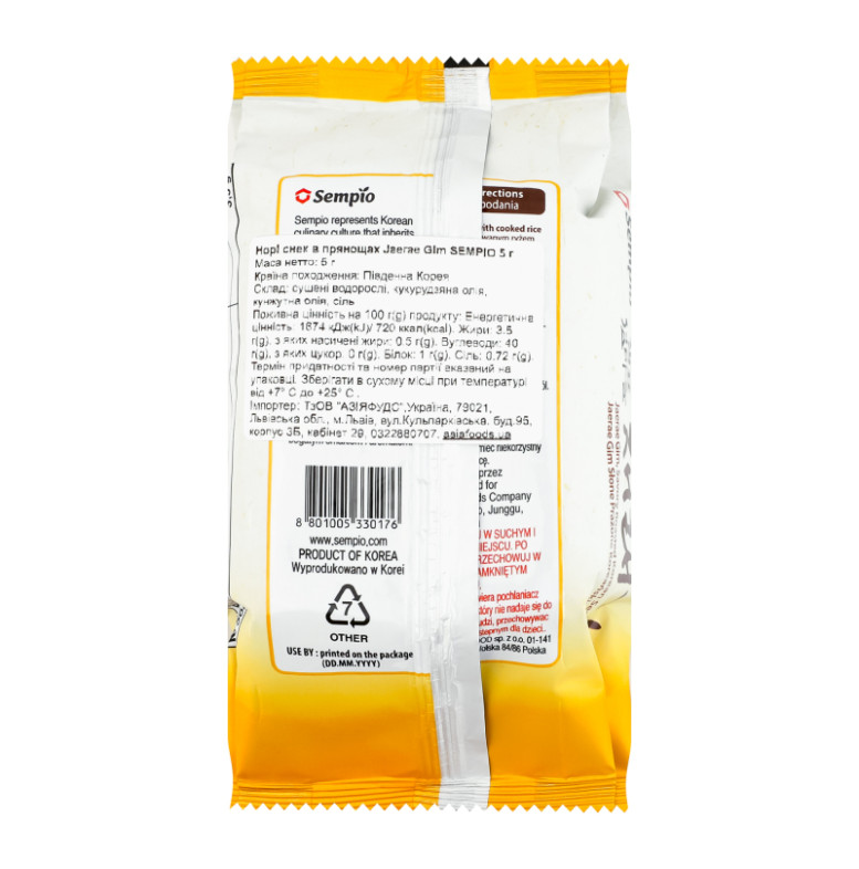 Норі снек в прянощах Jaerae gim Sempio м/у 5г