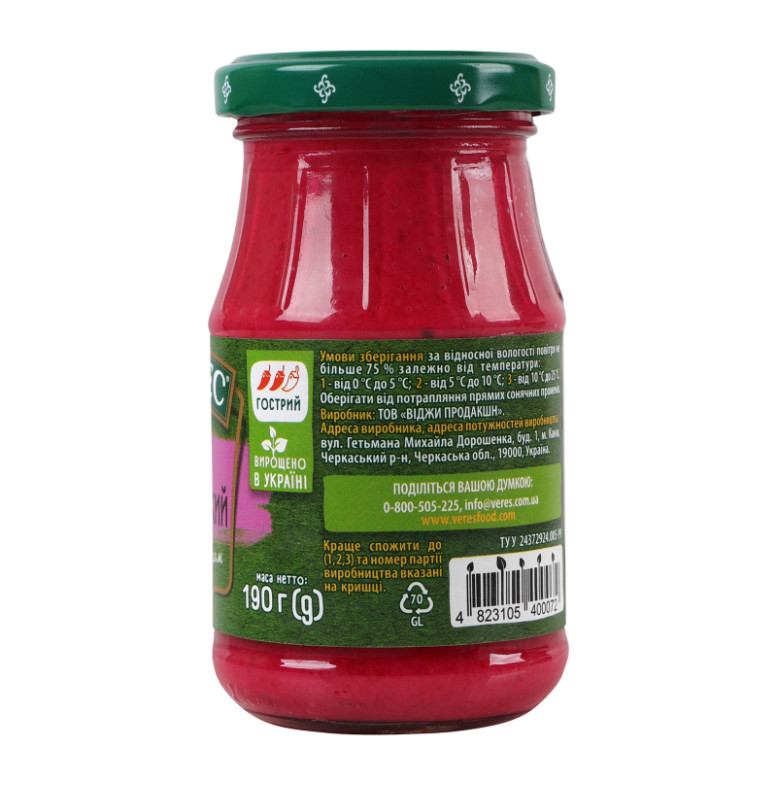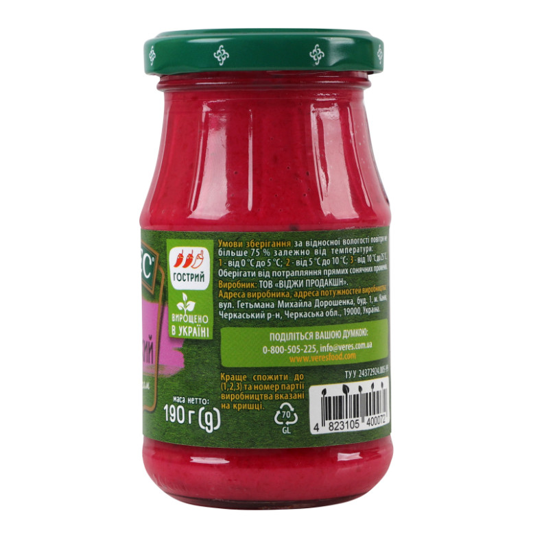Хрін з буряком нестерилізований Український Верес с/б 190г