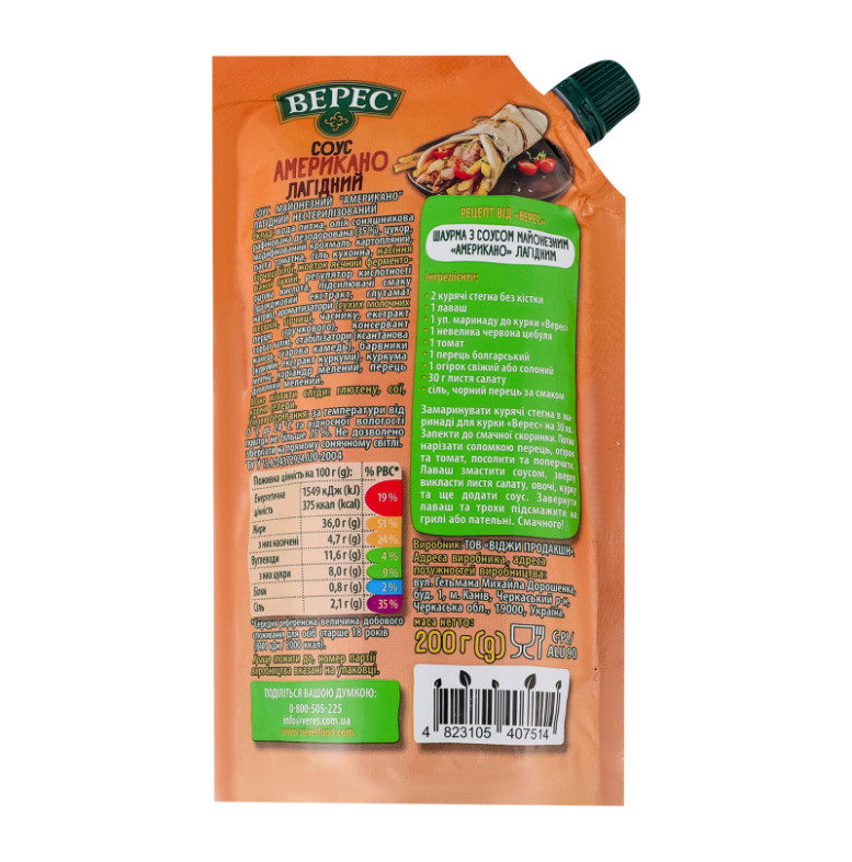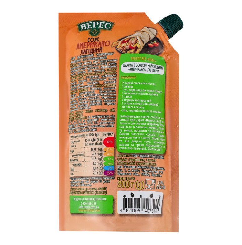 Соус майонезний лагідний нестерилізований Американо Верес д/п 200г