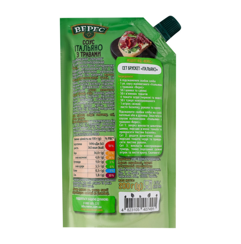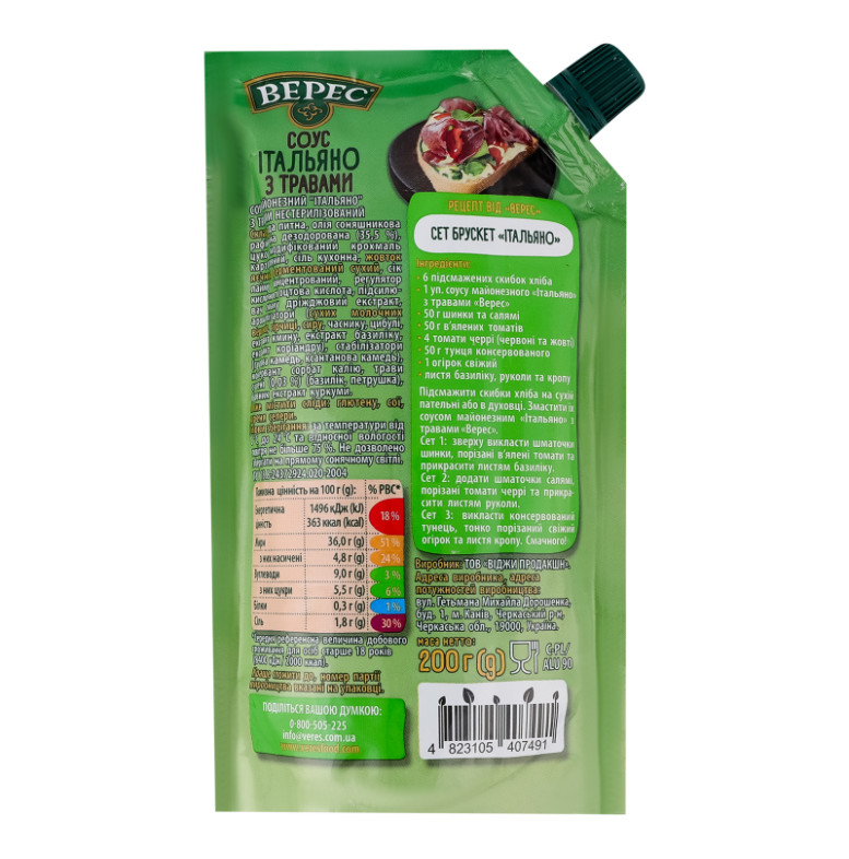 Соус майонезний з травами Італьяно нестерилізований Верес д/п 200г
