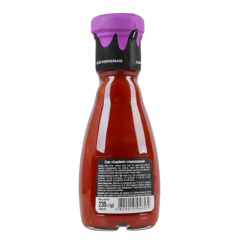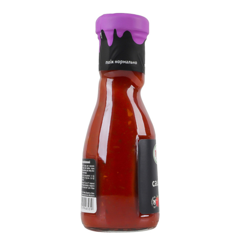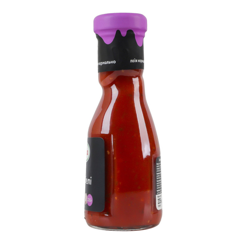 | Склад (укр.) | Вода питна, томатна паста (23.5%), цукор, оцет спиртовий, крохмаль кукурудзяний, сіль кухонна, сушені овочі (цибуля, перець солодкий, часник (0.44%), прянощі (коріандр, пажитник, кріп, чабер, базилік (0.05%), екстракти прянощів, екстракт гострого перцю |