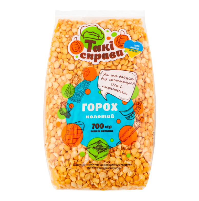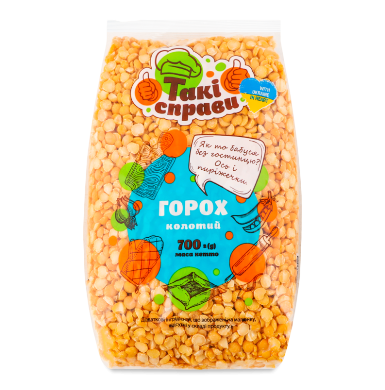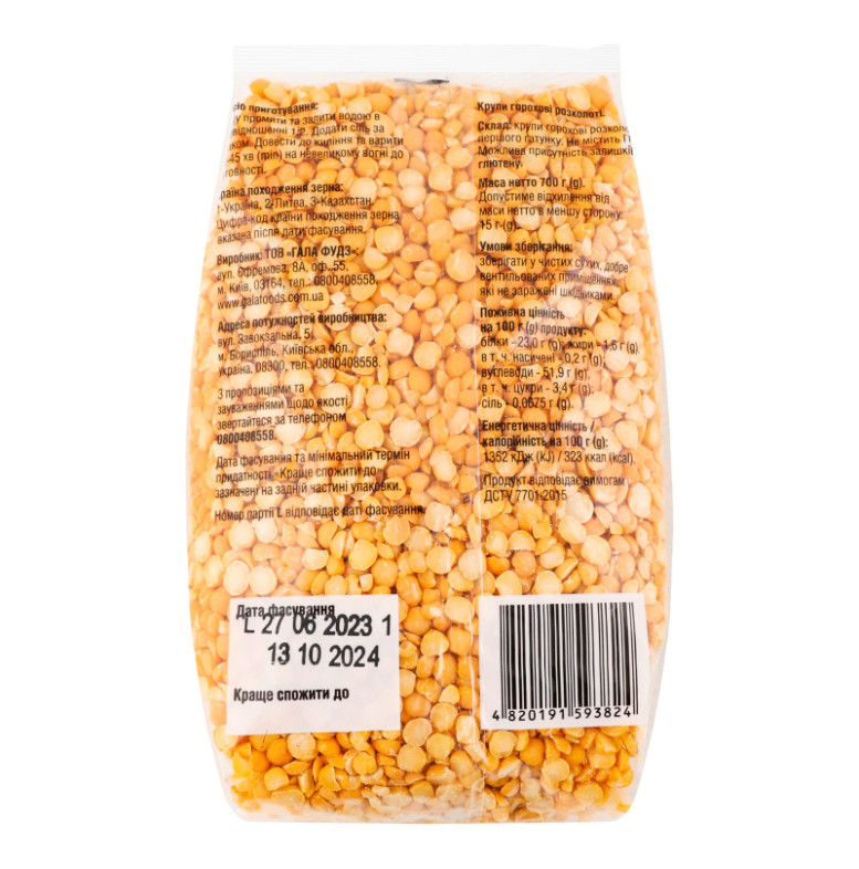 Склад (укр.): Крупи горохові розколоті першого ґатунку