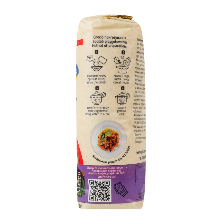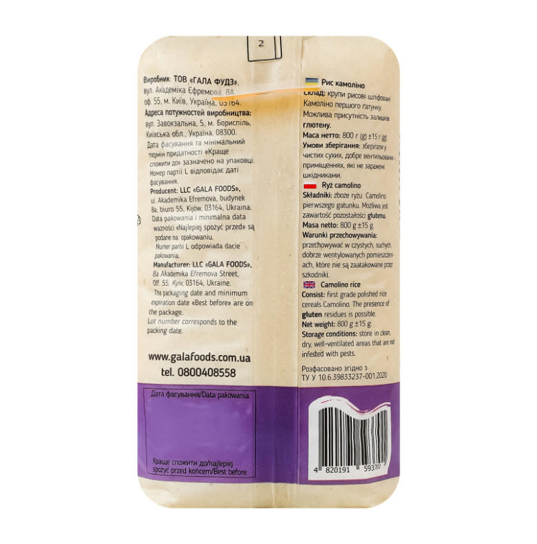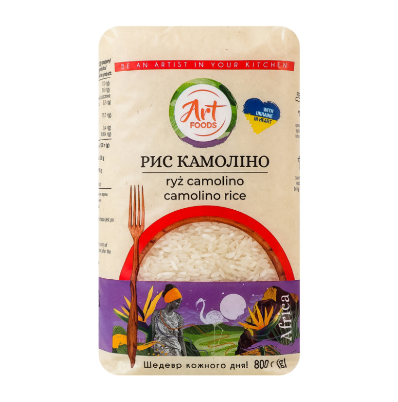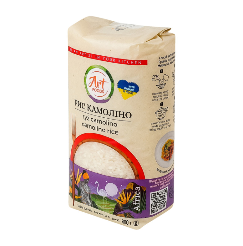 | Склад (укр.) | Крупи рисові шліфовані Камоліно першого гатунку |