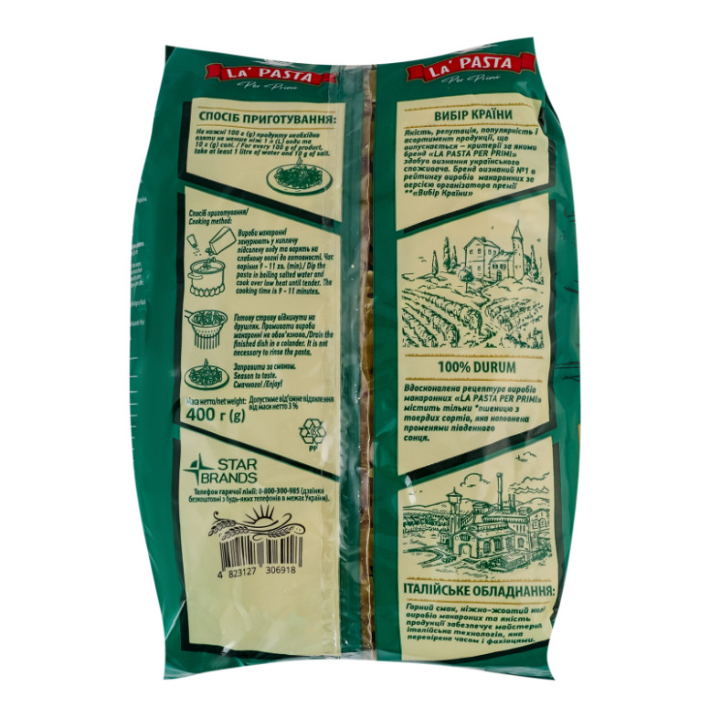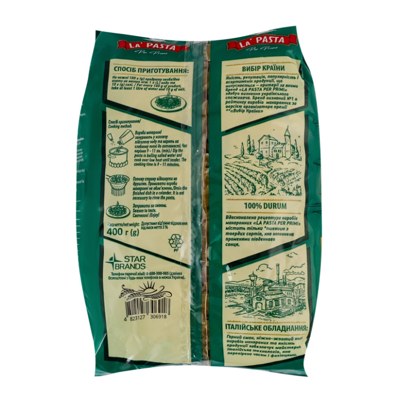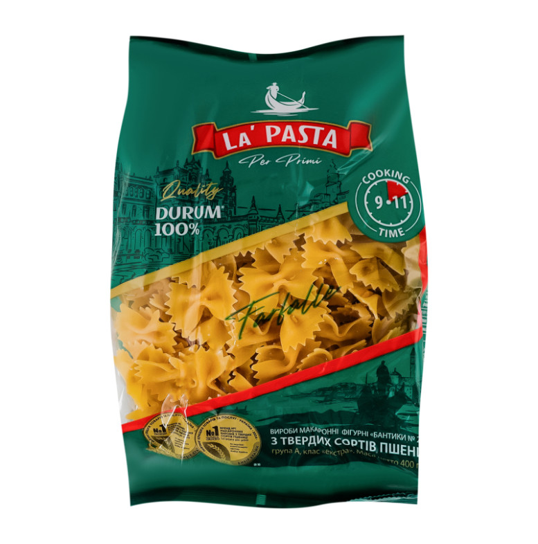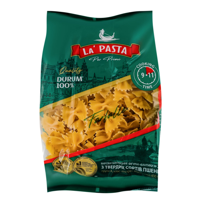 Вироби макаронні фігурні з твердих сортів пшениці група А клас екстра Бантики №2001 La' Pasta Per Primi м/у 400г