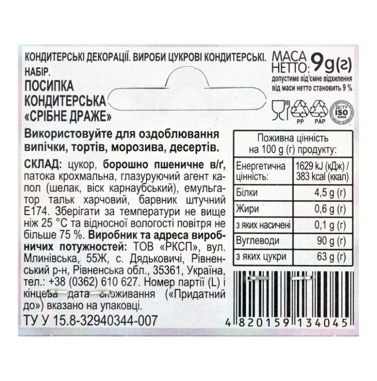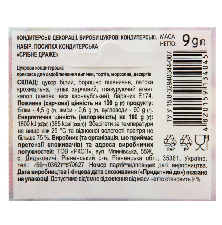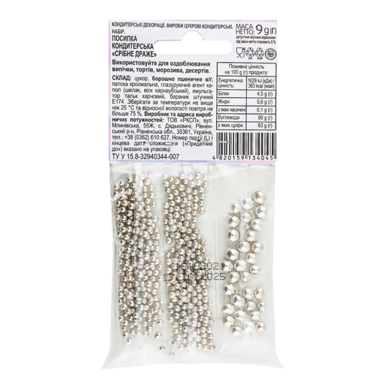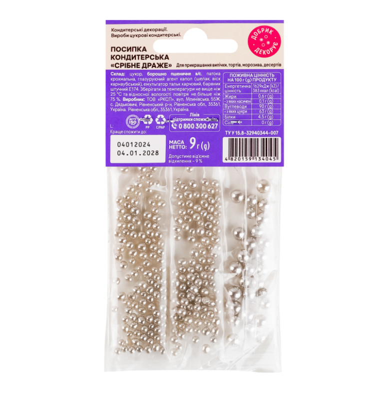 Посипка кондитерська Срібне драже Добрик м/у 9г