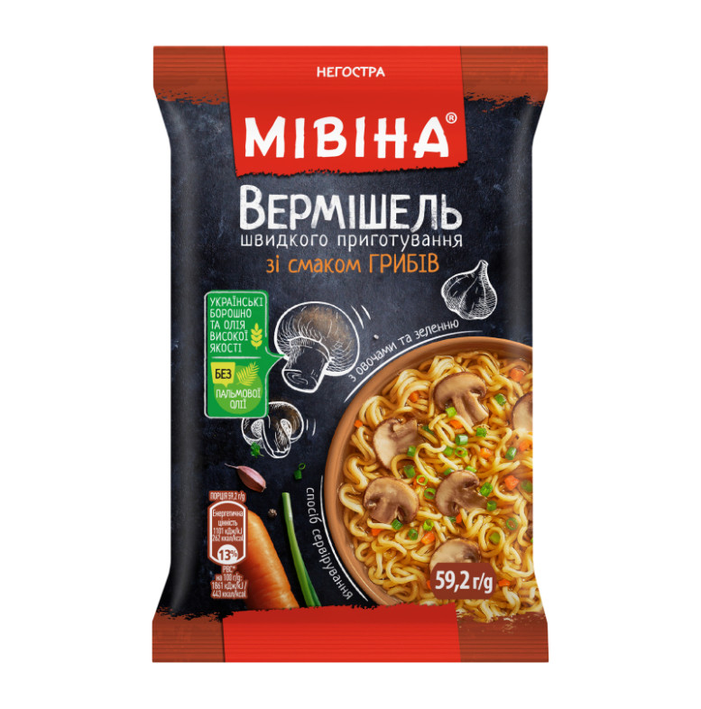 Вермішель швидкого приготування негостра зі смаком грибів з овочами та зеленню Мівіна м/у 59.2г