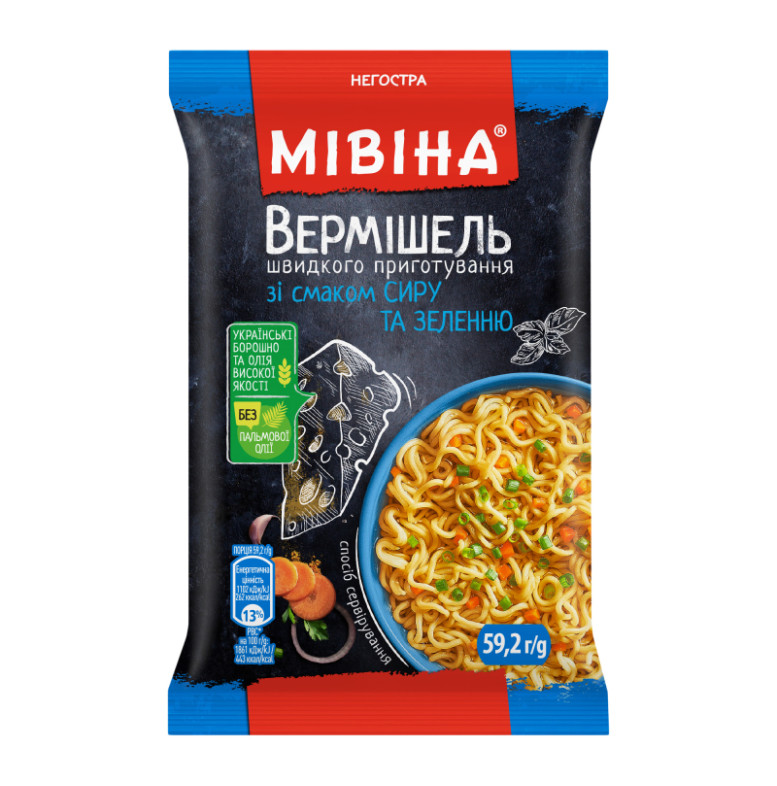 Вермішель швидкого приготування негостра зі смаком сиру та зеленню Мівіна м/у 59.2г