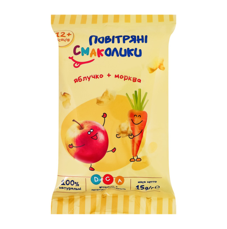 Сніданки сухі круп'яні для дітей від 12міс Яблучко + морква Повітряні Смаколики м/у 15г