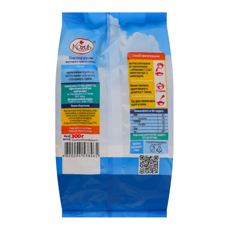 Пластівці вівсяні миттєвого приготування Найніжніші Kozub м/у 300г