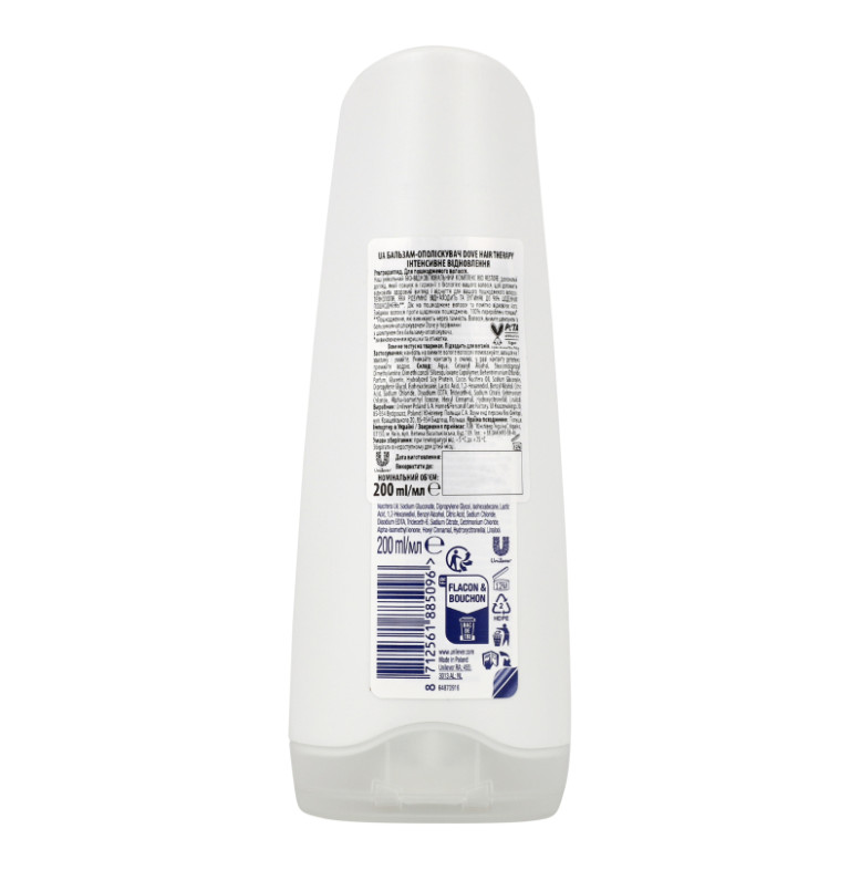 Склад: Вода, цетеариловий спирт, стеарамідопропілдиметиламін, сополімер диметиконолу/сілсесквіоксану, хлорид бегентримоніуму, парфум, гліцерин, гідролізований соєвий білок, кокосова олія, глюконат натрію, дипропіленгліколь, ізогексадекан, молочна кислота, 1,2-гександіол, бензиловий спирт, лимонна кислота, хлорид натрію, динатрій ЕДТА, трідецет-6, цитрат натрію, хлорид цетримонію, альфа-ізометіл іонон, гексил циннамал, гідроксіцітронеллаль, ліналоол