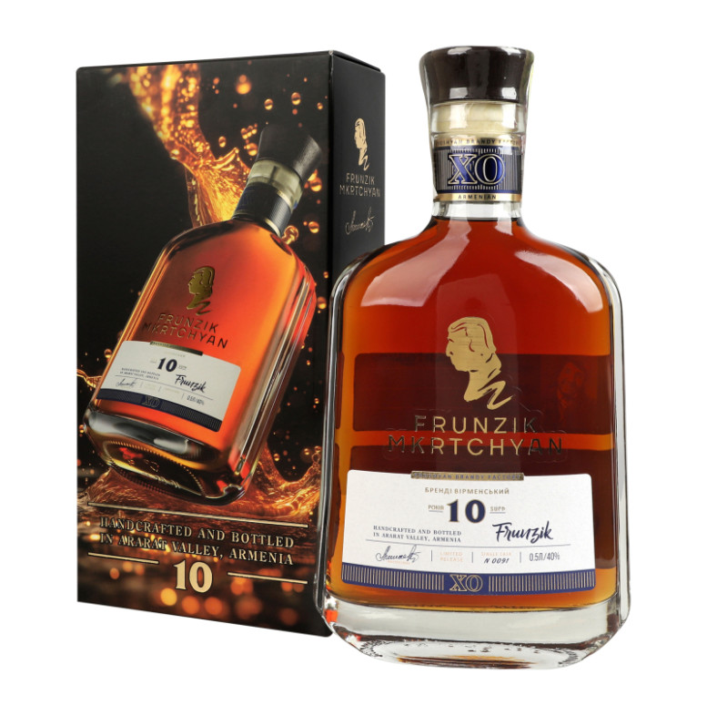 Бренді 0.5л 40% вірменський марочний 10 років Frunzik Mkrtchyan PBF к/у