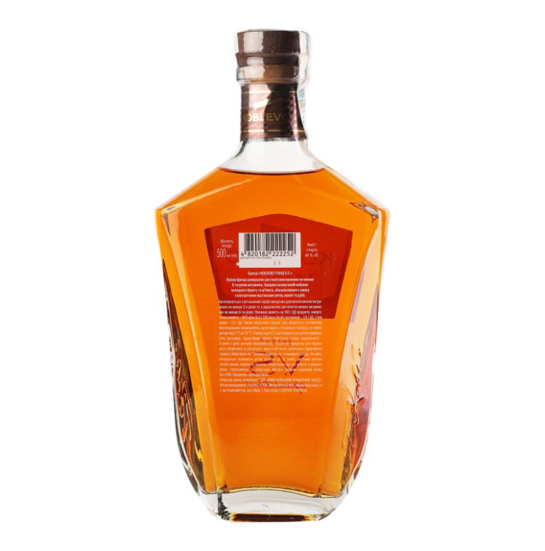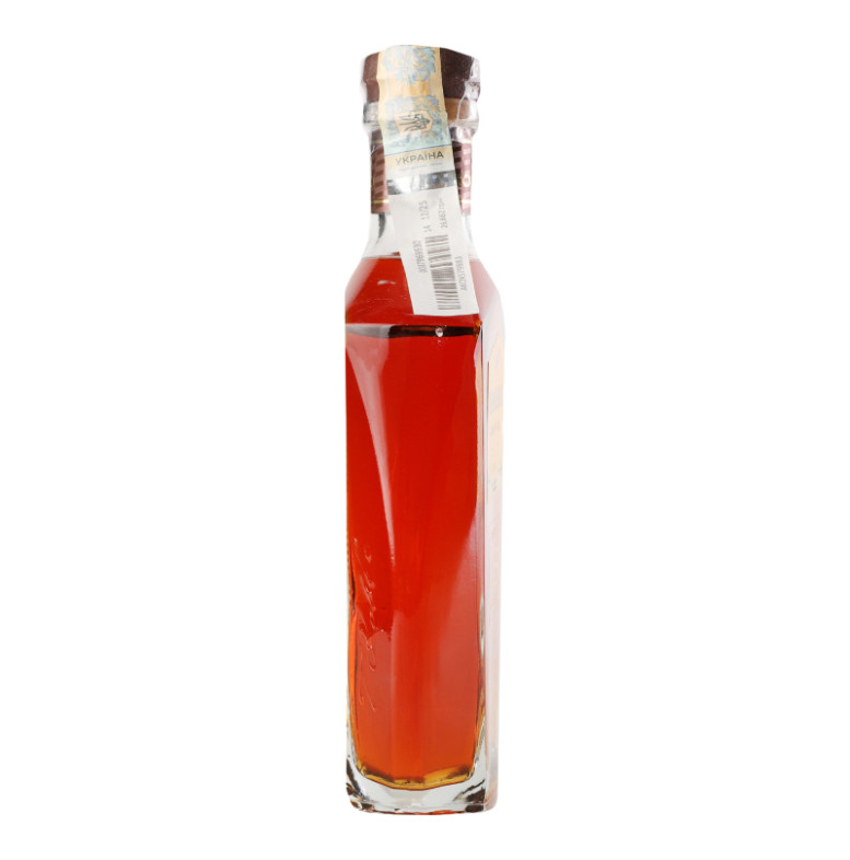 Склад: Вітчизняні та/або імпортні дистиляти винні витримані не менше 3-х років та з додаванням дистилятів винних витриманих не менше 6-ти років, барвник цукровий колер