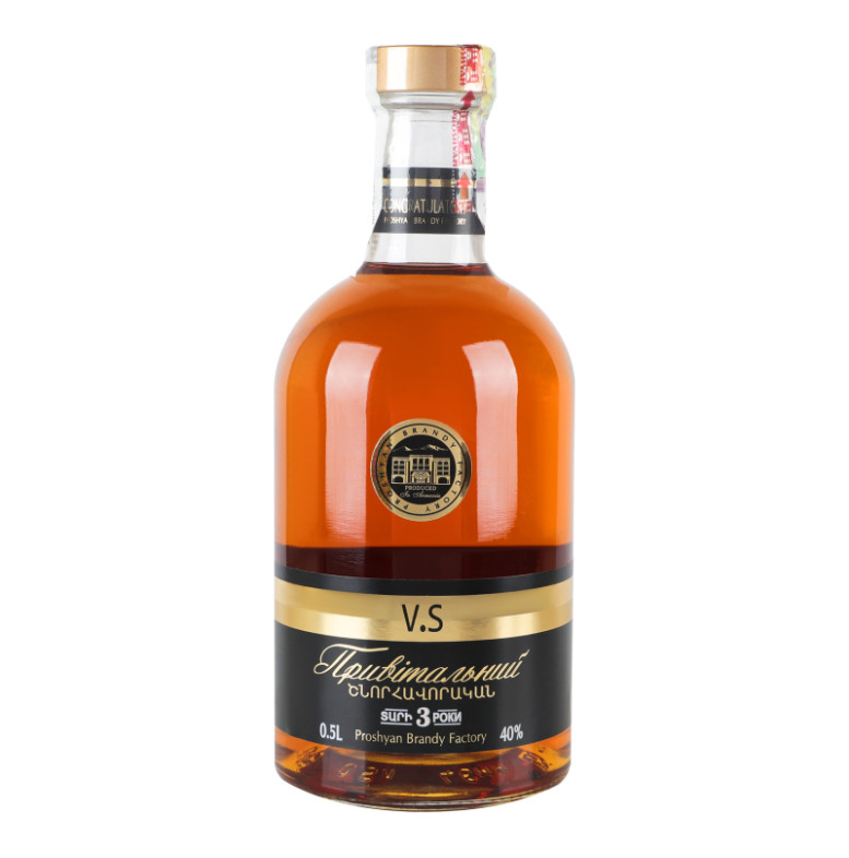 Бренді 0.5л 40% вірменський ординарний 3 роки VS Привітальний PBF пл