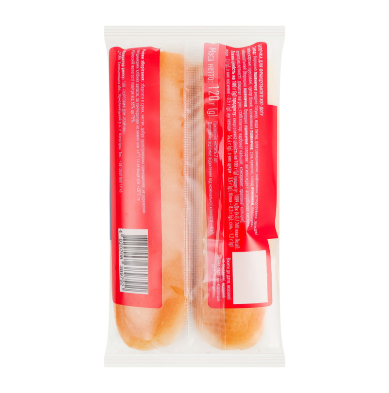 | Склад (укр.) | Борошно пшеничне вищого ґатунку, вода питна, олія соняшникова рафінована дезодорована, дріжджі хлібопекарські пресовані, цукор білий, клейковина пшенична, сіль кухонна, солод ячмінний, поліпшувач хлібопекарський (борошно пшеничне, борошно пшеничне солодове, антиоксидант: аскорбінова кислота, регулятор кислотності: діацетат натрію, стабілізатор: карбонат кальцію, консервант: пропіонат кальцію) |