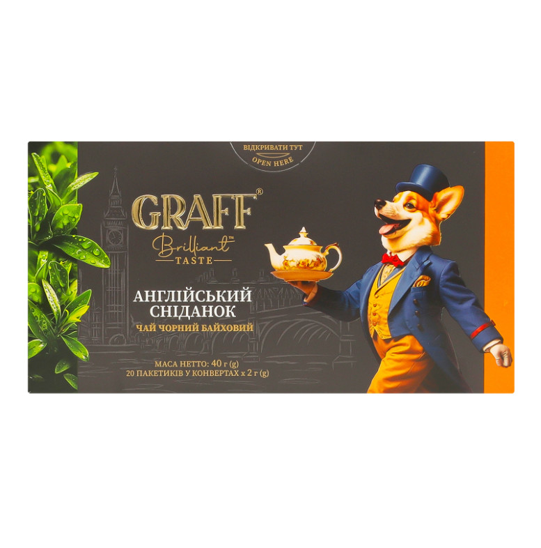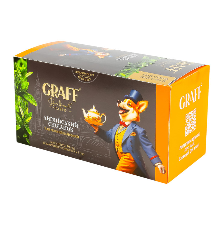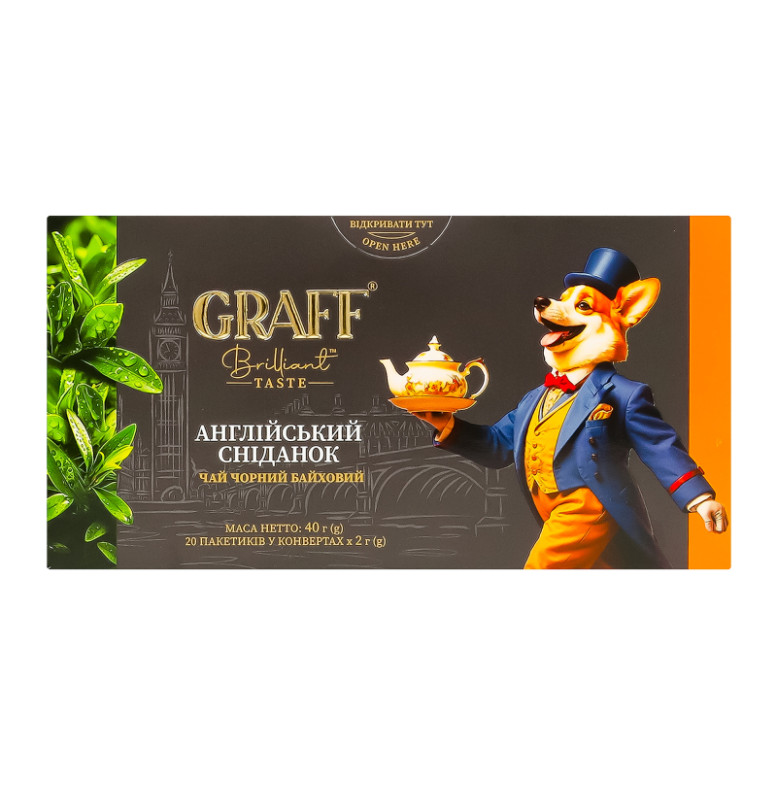 Чай чорний байховий Англійський сніданок Graff к/у 20х2г