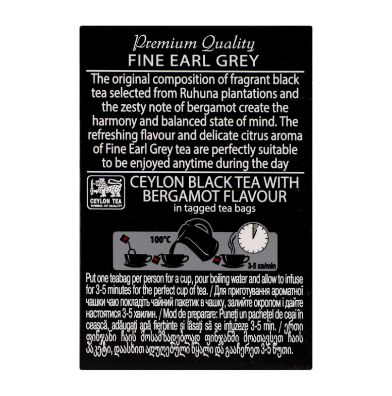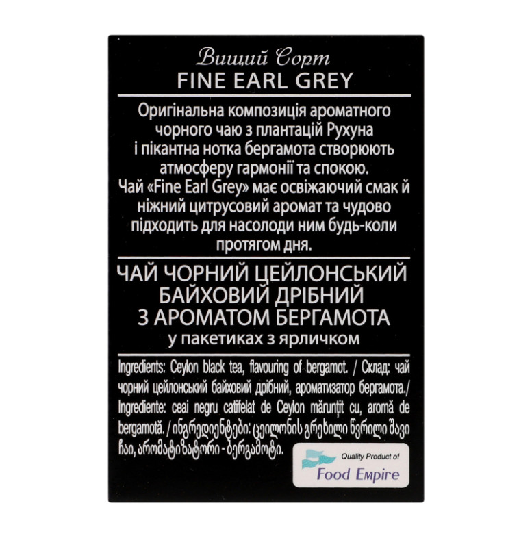 Склад: Чай чорний цейлонський байховий дрібний, ароматизатор бергамота