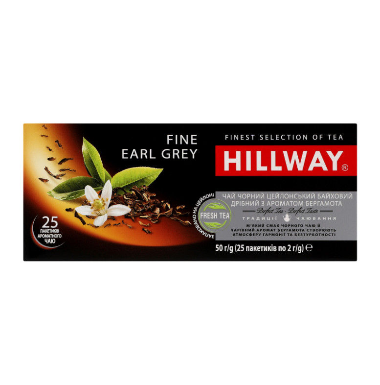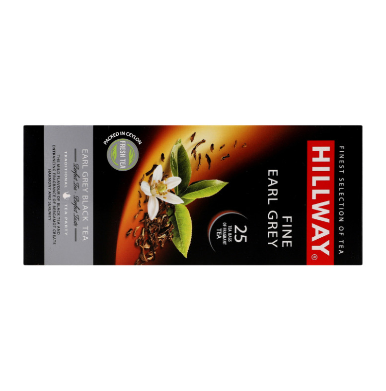 Чай чорний цейлонський байховий дрібний з ароматом бергамоту Fine Earl Grey Hillway в/с к/у 25х2г