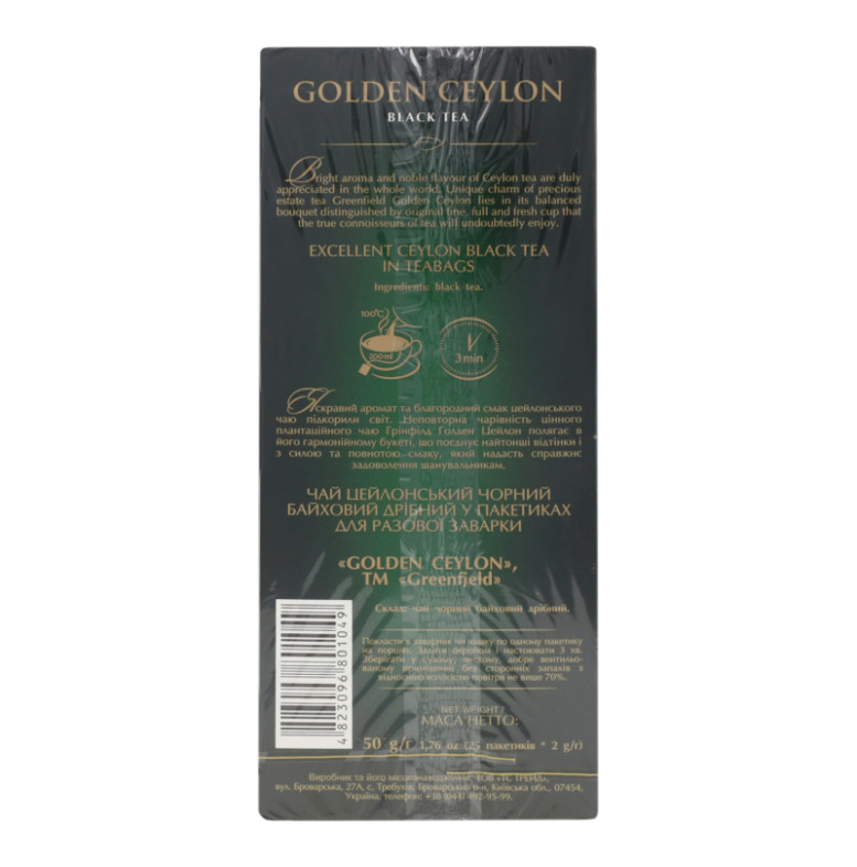 Чай чорний байховий дрібний Golden Ceylon Greenfield к/у 25х2г
