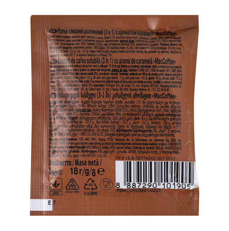 Напій кавовий розчинний з ароматом карамелі 3в1 MacCoffee м/у 18г