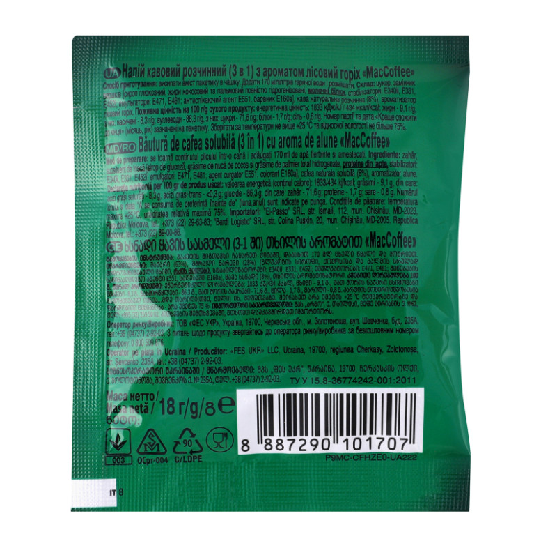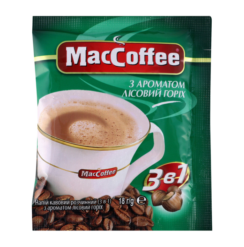 Напій кавовий розчинний з ароматом лісовий горіх 3в1 MacCoffee м/у 18г
