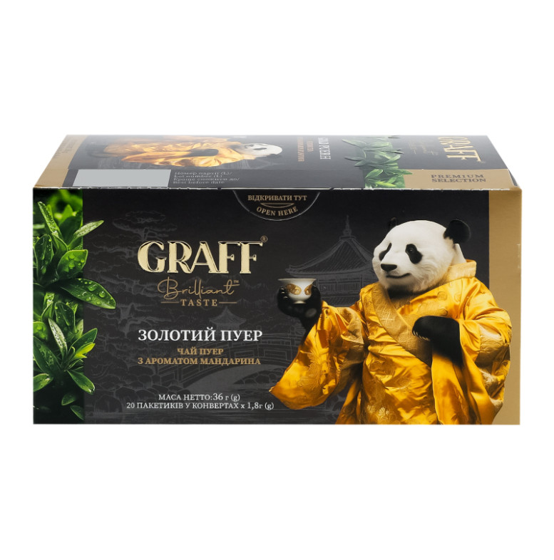 Чай пуер з ароматом мандарина Золотий пуер Graff к/у 20х1.8г