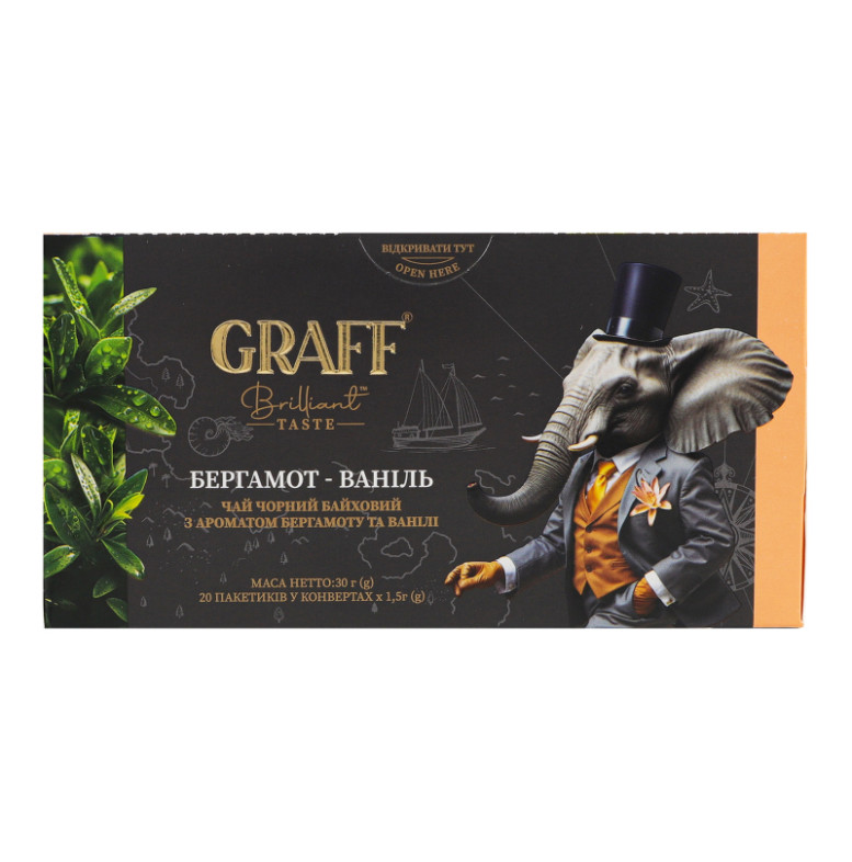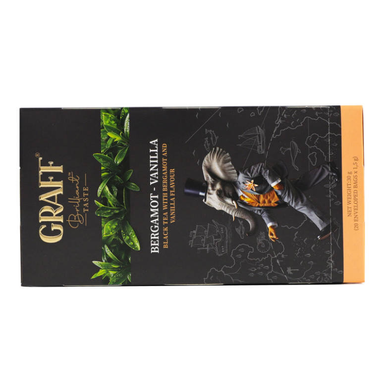 Чай чорний байховий з ароматом бергамоту та ванілі Бергамот-ваніль Graff к/у 20х1.5г