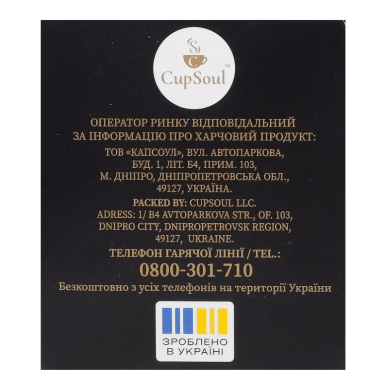 | Склад (укр.) | Чай чорний байховий дрібний |