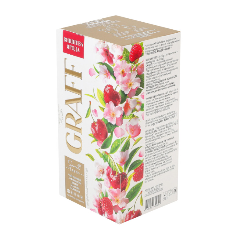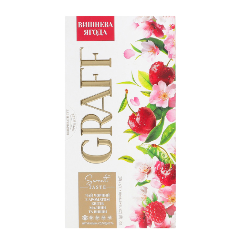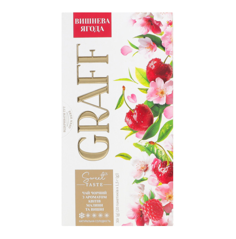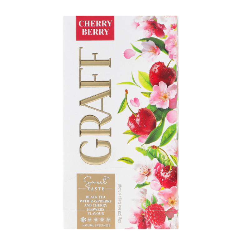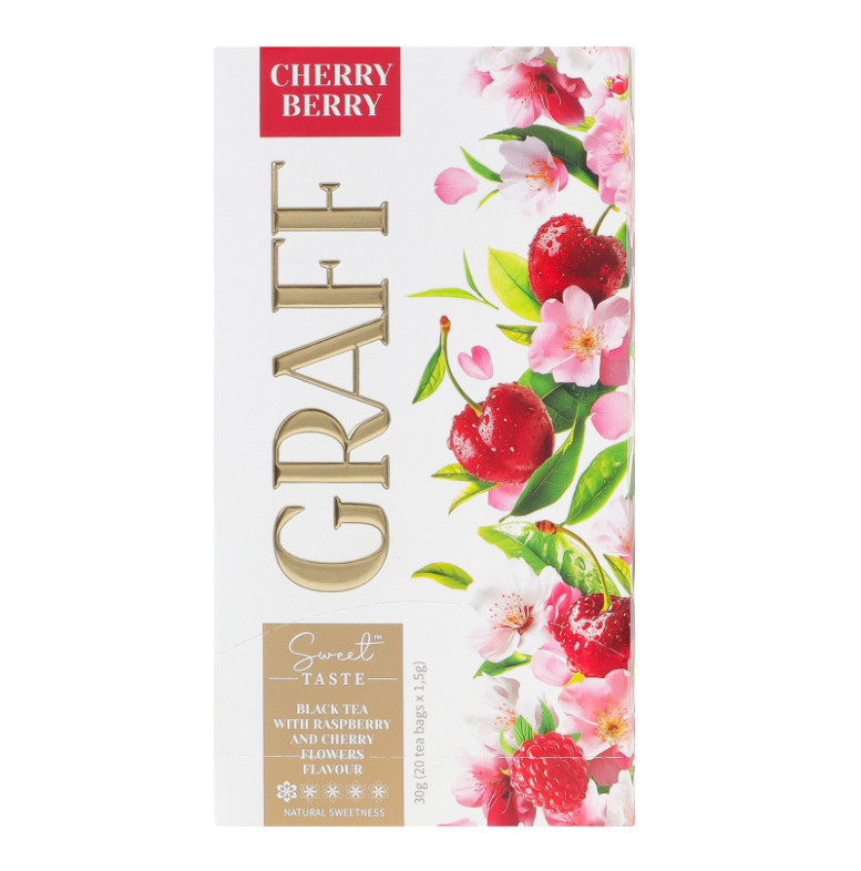 Чай чорний байховий з ароматом квітів малини та вишні з натуральним підсолоджувачем Вишнева ягода Graff к/у 20х1.5г