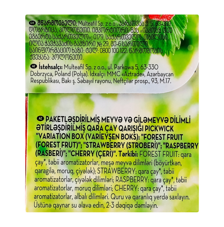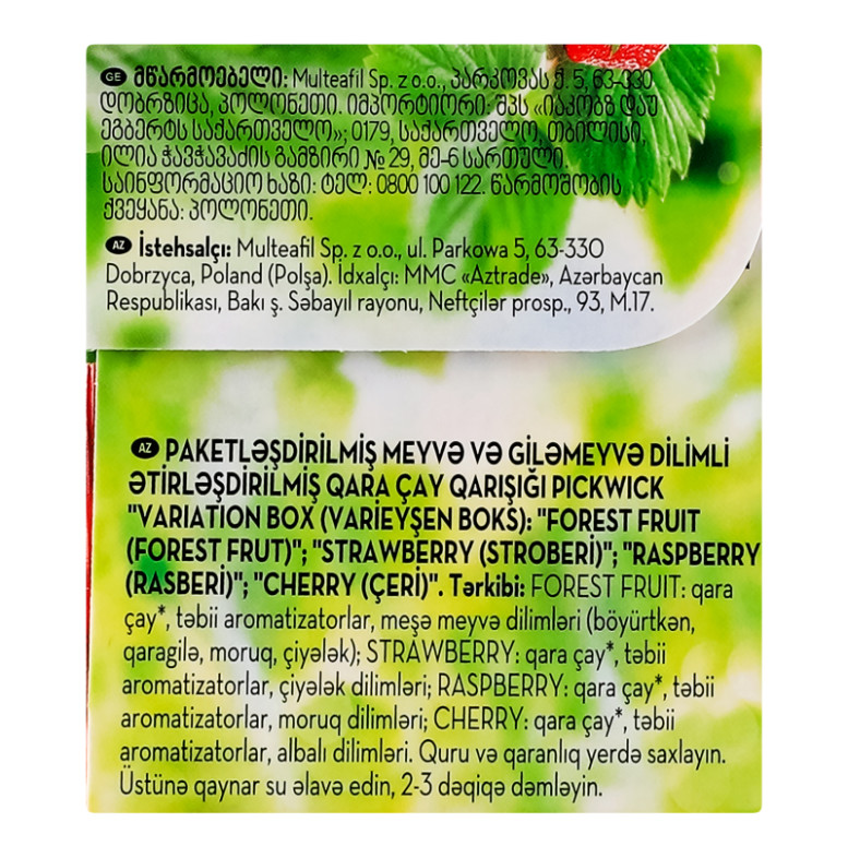 Чай чорний ароматизований зі шматочками фруктів ягодами Variation Box Pickwick к/у 20х1.5г