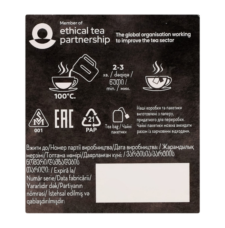 | Вид продукції | ЧАЙ |