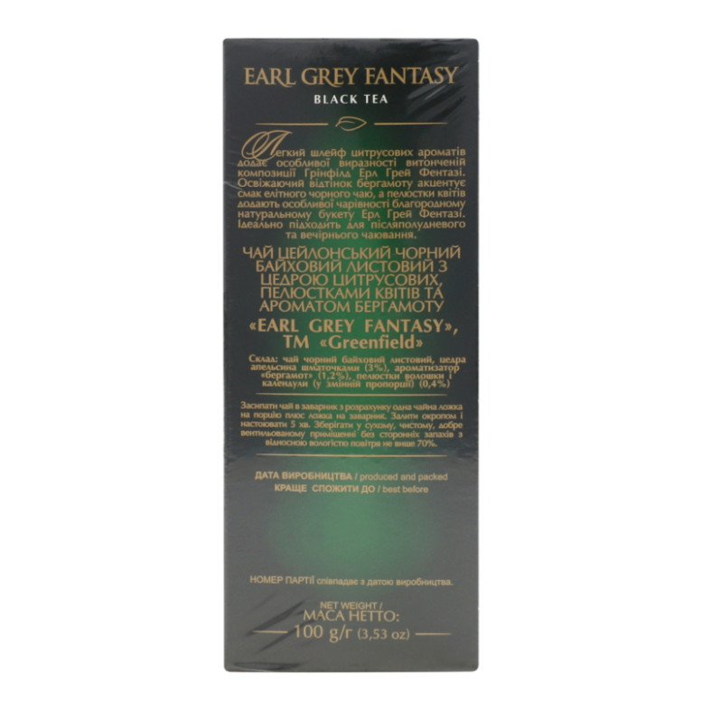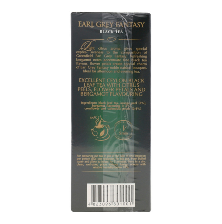 Чай чорний листовий з цедрою цитрусових пелюстками квітів та ароматом бергамоту Earl Grey Fantasy Greenfield к/у 100г