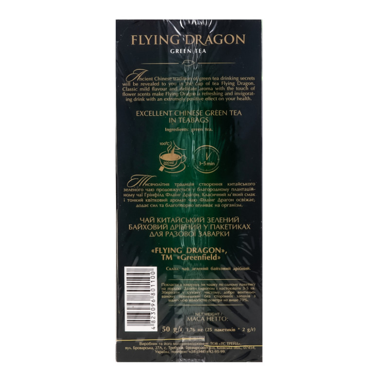 Чай зелений китайський байховий дрібний Flying dragon Greenfield к/у 25х2г