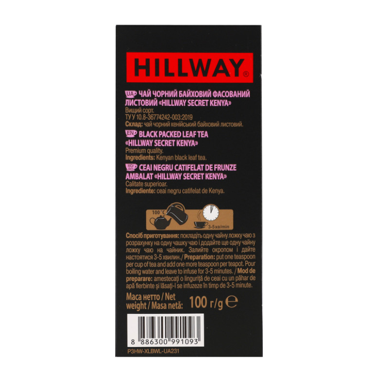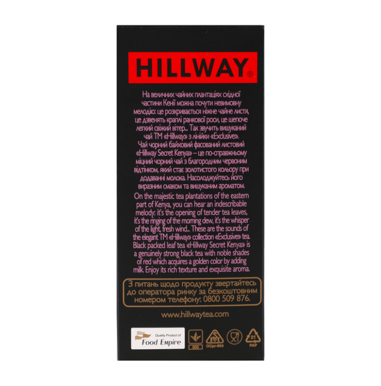 Чай чорний байховий листовий Secret Kenya Exclusive Hillway в/с к/у 100г