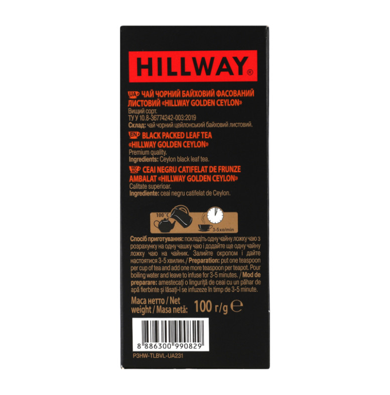 Чай чорний байховий листовий Golden Ceylon Exclusive Hillway в/с к/у 100г