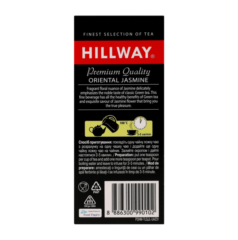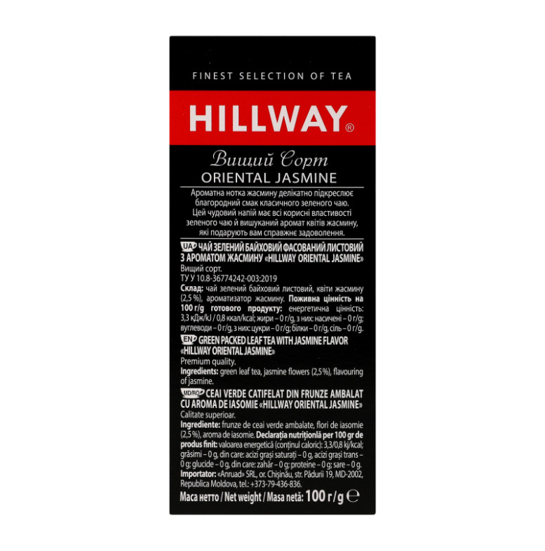 Чай зелений байховий листовий з ароматом жасмину Oriental Jasmine Hillway в/с к/у 100г
