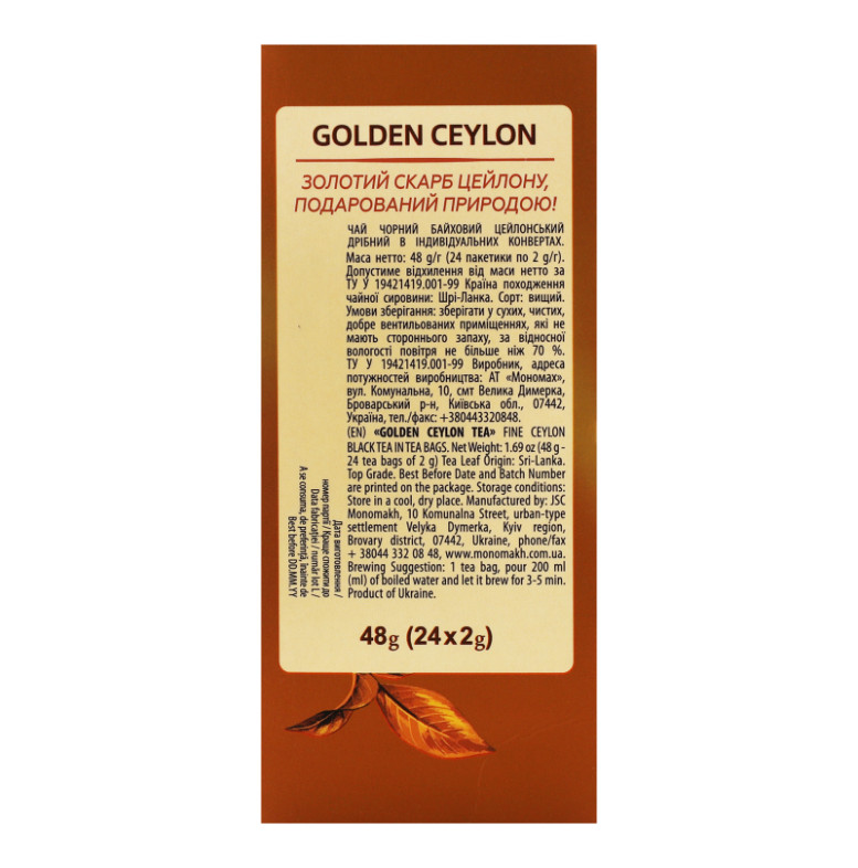 Чай чорний байховий дрібний Golden Ceylon Lovare к/у 24х2г