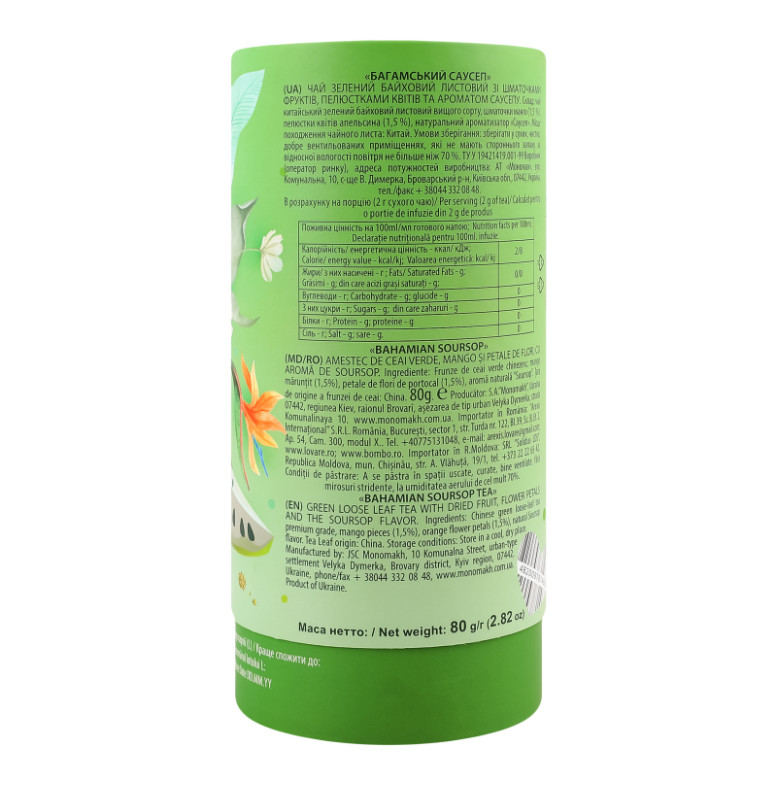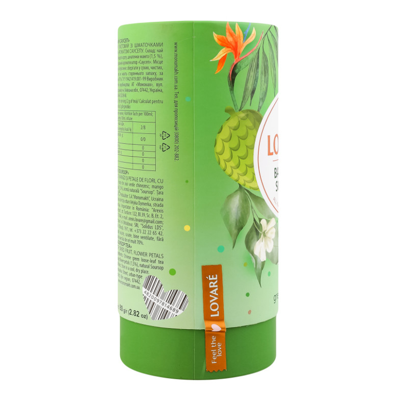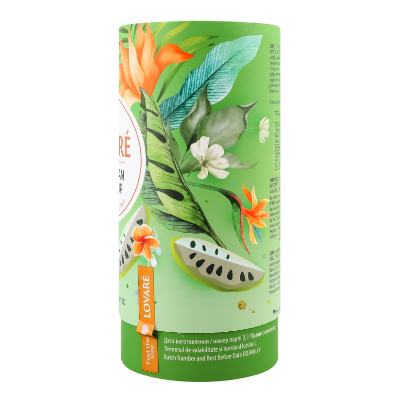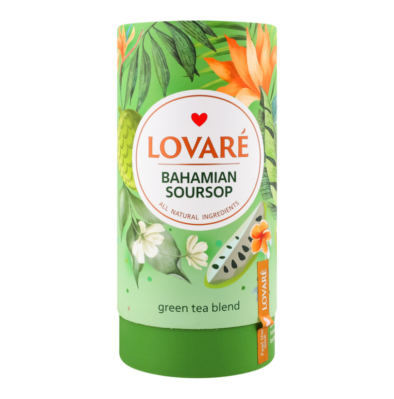 Чай зелений листовий зі шматочками фруктів пелюстками квітів та ароматом саусепу Багамський саусеп Lovare тубус 80г