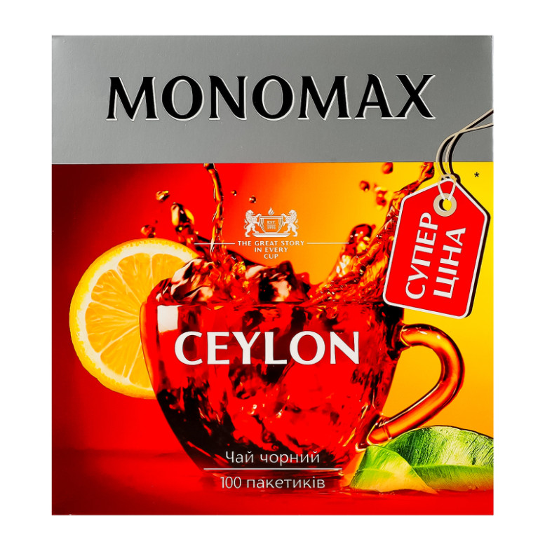 Чай чорний цейлонський байховий дрібний Ceylon Monomax в/с к/у 100х1.5г