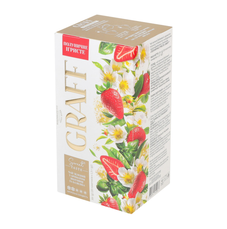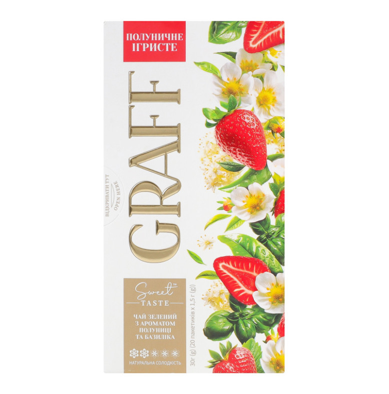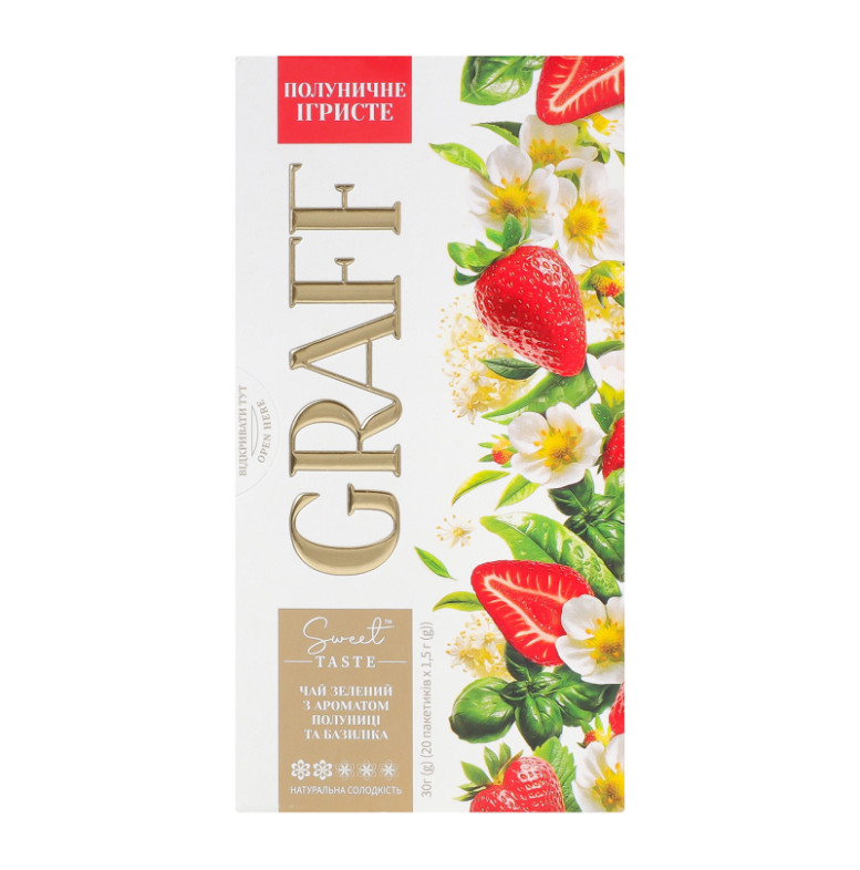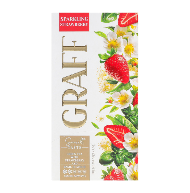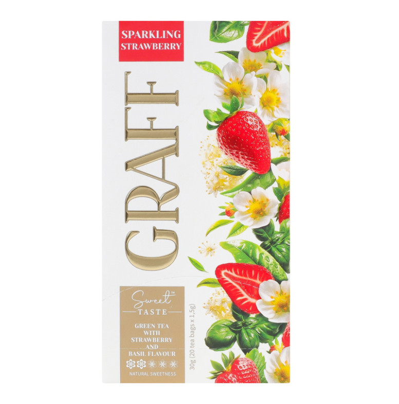 Чай зелений байховий з ароматом полуниці та базиліка з натуральним підсолоджувачем Полуничне ігристе Graff к/у 20х1.5г
