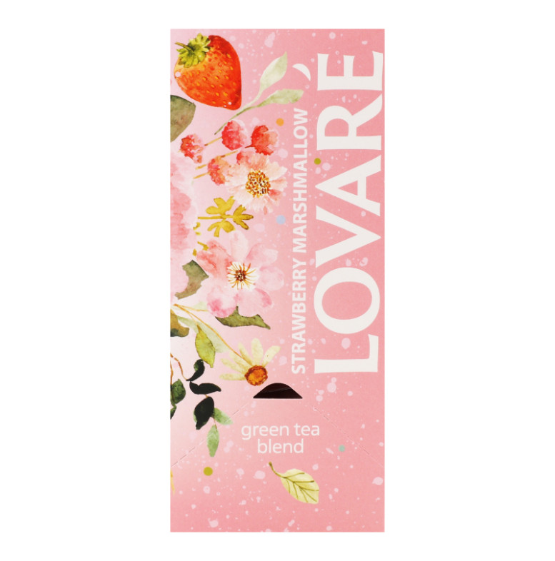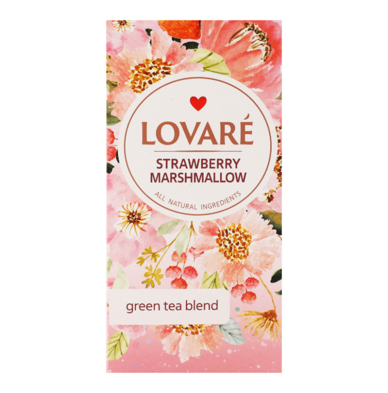 Чай зелений байховий дрібний з ягодами та пелюстками квітів та ароматом суниці Strawberry marshmallow Lovare к/у 24х1.5г