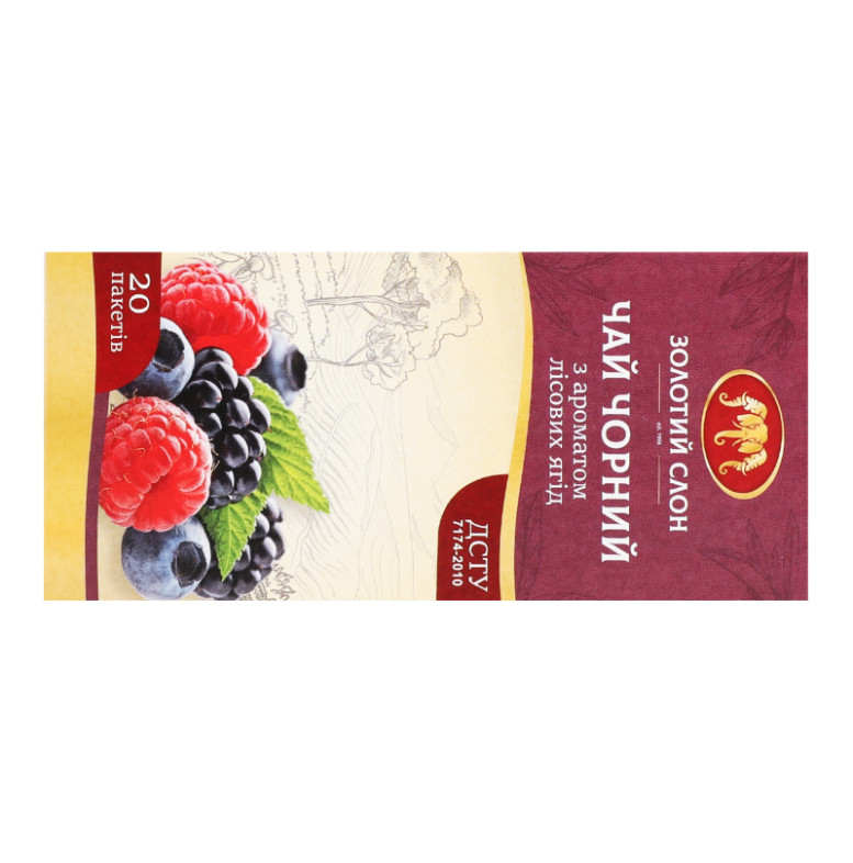 Чай чорний з ароматом лісових ягод Золотий слон к/у 20х1.3г
