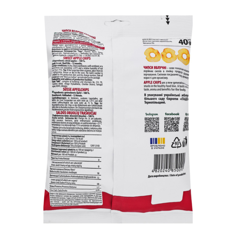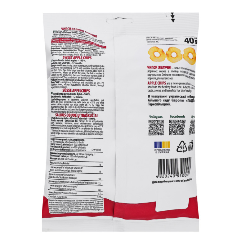 Чипси яблучні солодкі Garden Gadz м/у 40г