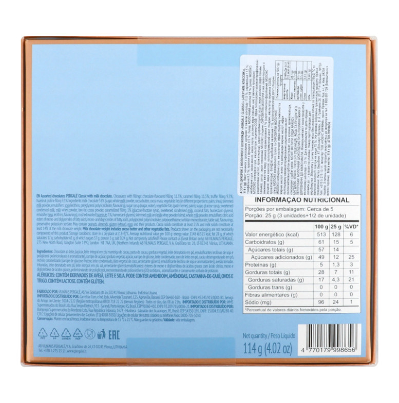 Цукерки з молочного шоколаду асорті Classic Pergale к/у 114г